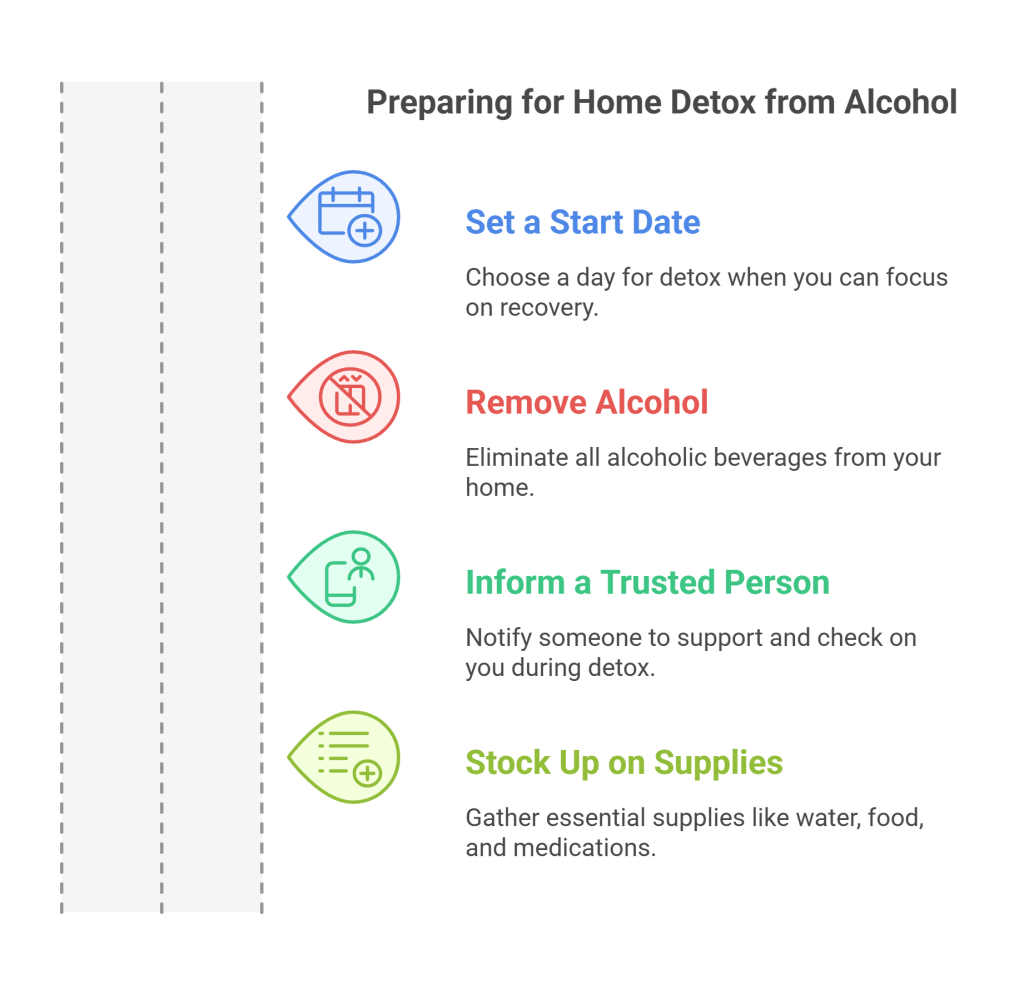 Detoxing from alcohol at home requires proper preparation. This step will help reduce discomfort and increase your chances of success.